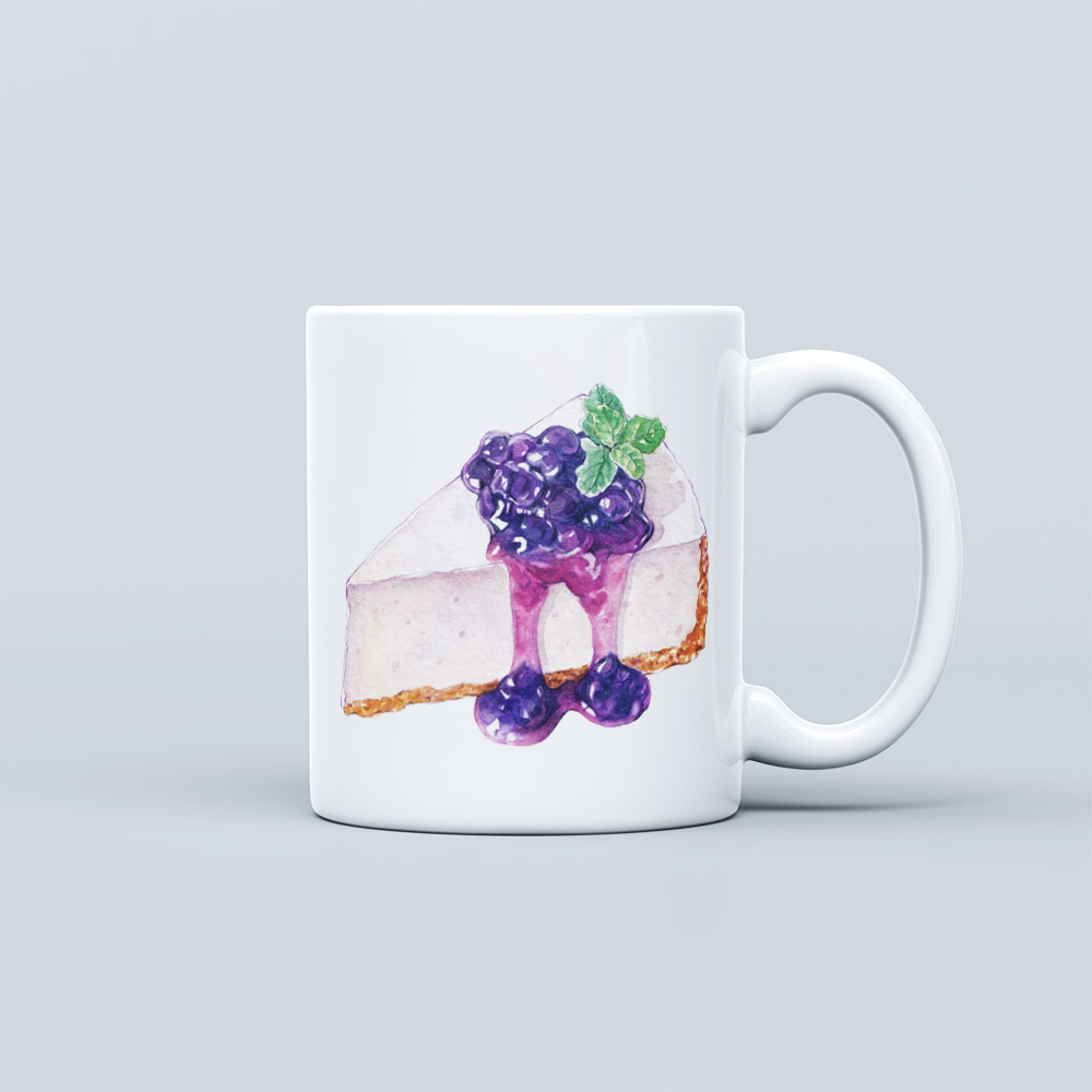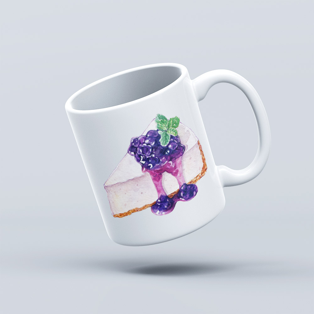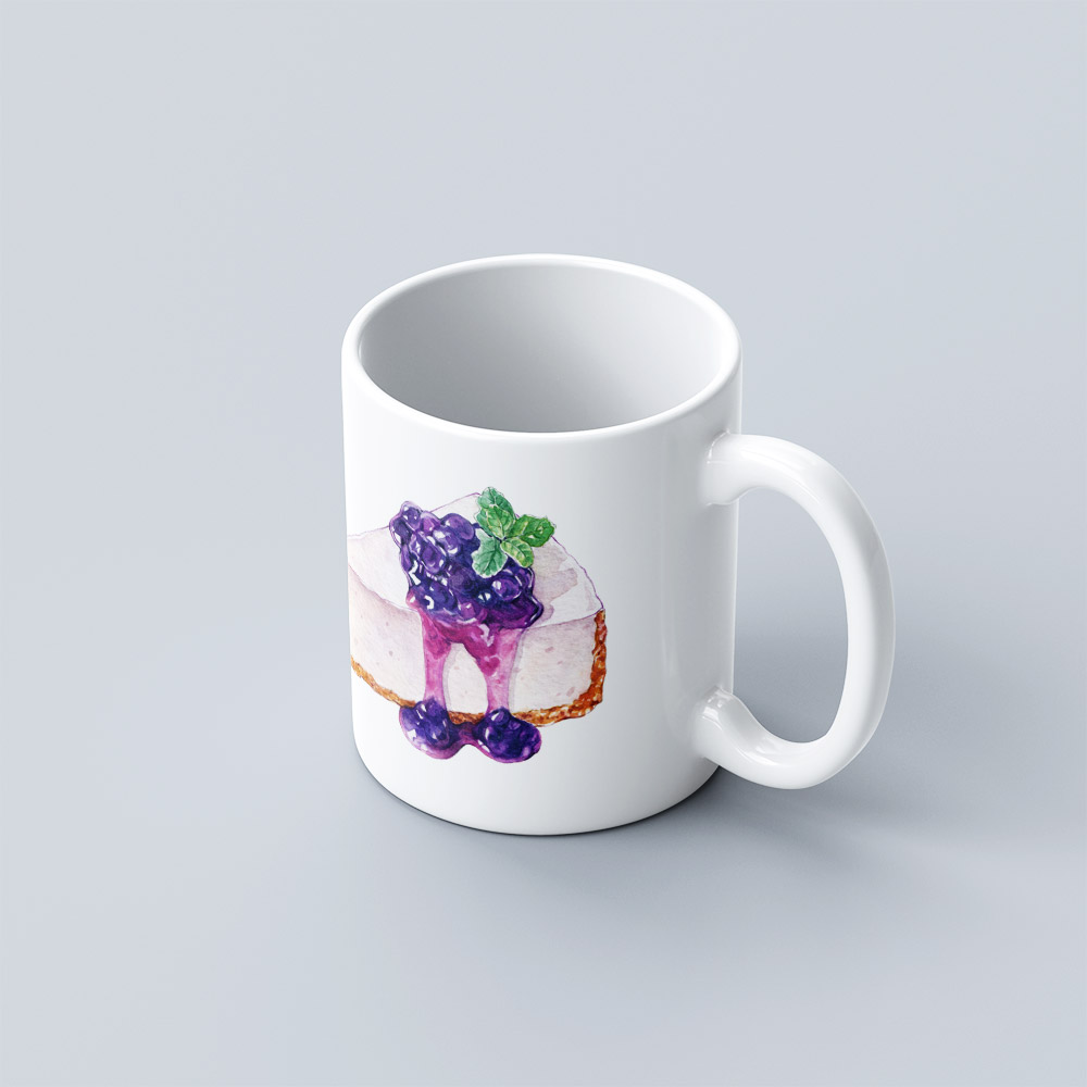 This mug features a classic white glaze with a straight-body design and a comfortable rounded handle. The front is adorned with a charming dessert-themed illustration — colorful and vibrant — adding a touch of sweetness to your daily routine.