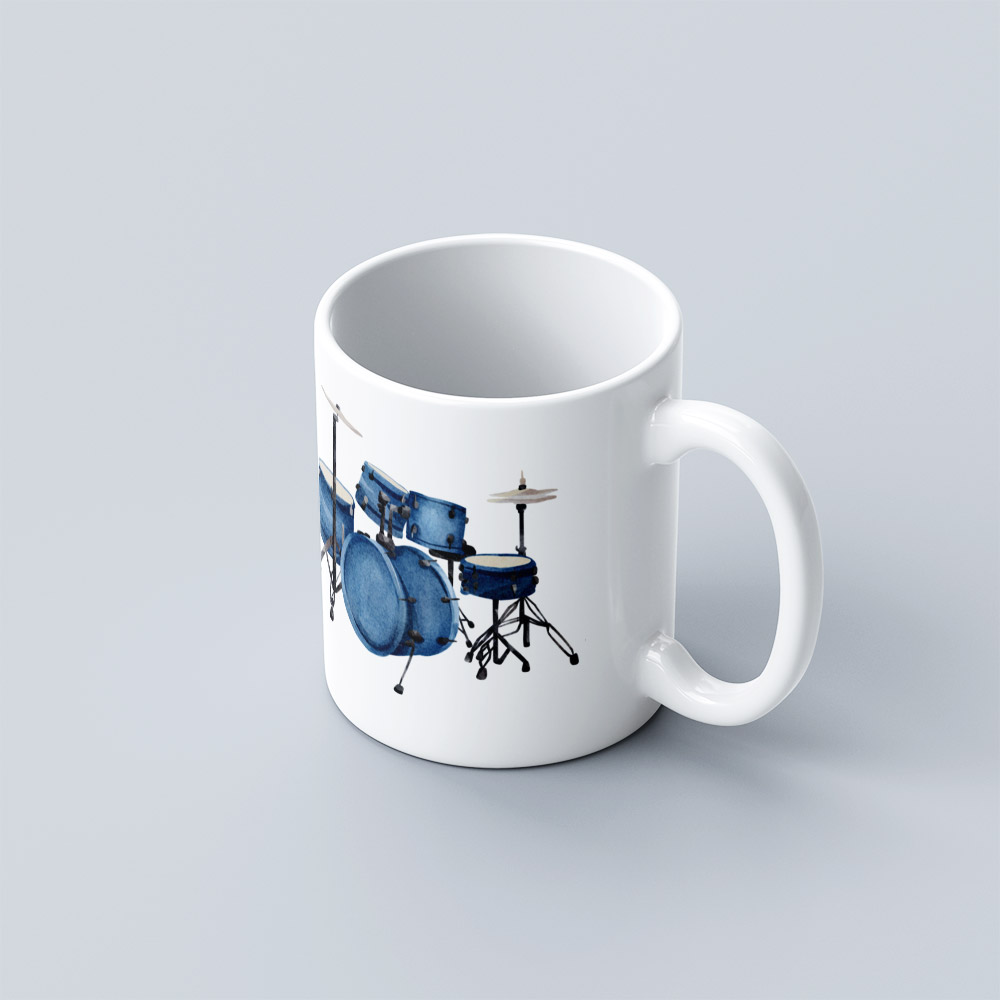 This mug features a classic white glaze with a straight-body design and a comfortable rounded handle. The front is adorned with a charming musical instruments-themed illustration — colorful and vibrant — adding a touch of melody and creativity to your daily routine.